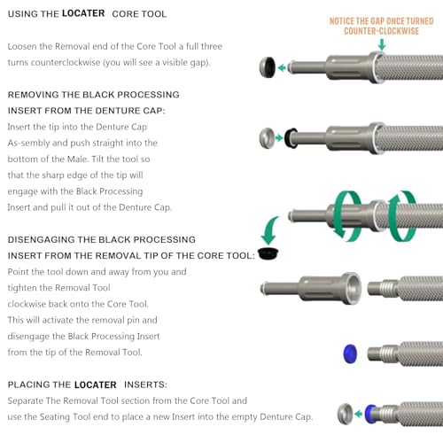 Universal Locater Overdenture Retention Caps Core Tool Kit for Male Cap Replacement Inserts Extraction (Core Tool)