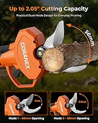 - CORANEX 2.05'' / 56 mm Cordless Electric Pruning Shears | Longer Runtime | Brushless Motor | Anti-Slip Handle | Safety Switch | Ideal for Garden, Orchard & Tree Trimming