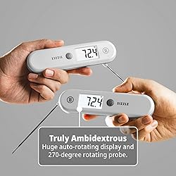 - Built for Real-Life Cooking: Waterproof, magnetic, and easy to clean, SIZZLE is made for everyday messes—greasy hands, bubbling pots, and the occasional accidental sink dunk. Stick it on the fridge or grill, rinse it when you’re done, and trust that it’ll be ready to go the next time you’re in the kitchen. Faster Temps, Better Meals: No more hovering over the stove or second-guessing the grill. SIZZLE delivers temperature readings in under 2 seconds, so you can check doneness quickly and serve juicy, perfectly cooked food—whether it’s a Tuesday night chicken breast or Saturday’s steak dinner. Quality You Can Count On: With ±0.9°F accuracy, a 270° folding probe, and a large auto-rotating backlit display, SIZZLE brings trusted ThermoWorks performance to home kitchens. Designed to last, it’s the reliable upgrade that outperforms budget tools—without overcomplicating the job. Suited for high-volume cooking operations: In fast-paced food prep environments SIZZLE saves time, reduces waste, and helps avoid costly food safety violations. Keep a SIZZLE at your prep station, at the grill, and on the line. SIZZLE will easily outlast several cheap look-alike thermometers. That’s a small investment for a big return in operational efficiency and peace of mind.