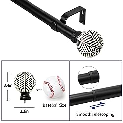 - Varillas de cortina negras para ventanas: varillas de cortina ajustables de diámetro de 1 pulgada de 72 "a 144", varilla de cortina de ventana pesada con acabados de patrón de hoja