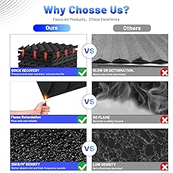 EXCELLENT SOUND ABSORPTION: Our sound absorbing panels combines the dual functions of efficient sound absorption and wall decoration. It can minimize noise, echo and reverberation to the greatest extent, making it an ideal choice for creating a music recording space with pure sound quality or for focusing on a quiet working environment SAFETY MATERIAL: Made of high-quality polyurethane foam with a density of 25 kg/m³, it is non-toxic and odorless. The soundproof wall panels has flame-retardant properties, protecting your space from potential fire hazards. It can be safely used in baby rooms, children's rooms or pet activity areas and is safe for all users FASTER RECOVERY: Acoustic panels are vacuum-packed and usually return to their original state within 24 to 48 hours after opening the package. To recover faster, they can be soaked in water for a few minutes, the excess water can be squeezed out, and then dried in the air WIDE APPLICATIONS: Focusound sound dampening panels can be used in any space that requires acoustic treatment to enhance sound clarity. It is suitable for various occasions such as recording studios, vocal rooms, control rooms, radio stations, studios and bedrooms. EASY INSTALLATION: Soundproofing foam panels are lightweight, easy to install and can be cut to any size. Please note: This product does not contain any adhesive. For a strong bond, it is recommended to use our double-sided tape (search B0FMGMM9YC)