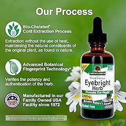 - Concentrated Eye Support – Delivers a powerful 2000 mg of organic Eyebright (Euphrasia officinalis) whole‑herb extract per 2 ml dose for natural vision support.* Alcohol‑Free & Gentle – Extracted with bio‑chelated, cold‑extraction techniques using vegetable glycerin and purified water—alcohol‑free, vegan, and smooth‑tasting. Clean, Allergen‑Friendly Formula – Free from gluten, preservatives, artificial flavors; certified Non‑GMO, Kosher, and vegan-friendly for clean wellness. Proven Herbal Integrity – Nature’s Answer’s Advanced Botanical Fingerprint and Holistically Balanced methods ensure authentic, consistent quality from plant to shelf. Easy to Use Daily – A reliable 1 oz size with dropper dosing—take 1–2 ml (28–56 drops) 3 times daily to maintain daily eye health support.*