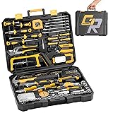 Comprehensive Tool Set: The tool kit equipped with a wide array of tools including wrenches, a hammer, tape measure, pliers, electrical tester, hacksaw, screwdriver bits, and sockets. The precision screwdrivers handle small fasteners in electronics and appliances Versatile Application: This multi-purpose toolkit supports various tasks around the house. Tools set is useful for furniture assembly, minor plumbing repairs, basic woodworking, light fixture installation, and general maintenance Forged Steel Construction: Tools are made from durable forged steel and feature a polished chrome finish. This design aims to provide strength and resist rust, supporting the toolkit's longevity through repeated use Organized Storage Case: All tools come securely housed in a sturdy tool box case with custom dividers. This compartmentalized storage system helps keep your tools organized, protected, and easily portable A Thoughtful Gift Idea: A practical and welcomed gift for new homeowners, college students moving into dorms, or as a corporate gift. The basic tool kit covers the essentials for common household fixes and DIY projects