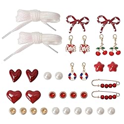 - 34Pcs Bling Red Shoe Charms for Sneakers, Shoe Lace Clips, DIY Junk Sock Charms Kits for Women