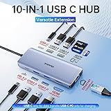 USB C Hub Multiport Adapter (10 IN 1): This multifunctional usb c to hdmi adapter equipped with 1 x 4K @60Hz HDMI, 1 x Ethernet port, 100W PD Port, 3 x USB A&C 3.0 (5 Gbps), 3 x USB 2.0 ports and SD/Micro SD card reader slot. This usb c adapter is an ideal gadget for most laptops,tablets with thunderbolt 3/4 type c port. 4K@60Hz HDMI to USB C hub: This usbc hub ethernet allows you to achieve up to 4K@60Hz (3840 x 2160) cystal-clear image, down compatible with 2K@144Hz/ 1080P. This macbook air hdmi adapter allows to mirror or extend your laptop screens or monitors by connecting monitors TVs projectors with hdmi ports. Please note that your device’s usb c port must supports video output (display port alt mode or thunderbolt), otherwise it will won’t output images on monitors or screens. 100W Power Delivery: USB-C to ethernet adapter equipped with a Gigabit Ethernet port, supporting 1000Mbs Ethernet to ensure a stable and fast wired network connection.The laptop multi-port usbc adapter supports up to 100W input and 87W output (safe) to charge your laptop at any time, no need to worry about power storage. Note: Ensure your laptop's USB-C port supports power delivery. Multiple USB Data Ports: usb c hub multiport adapter comes with 3 USB 3.0 ports (1 USB C and 2 USB A) up to 5Gbp/s, transfer speed for quick data transfer & charging up to [email protected], 2 USB A 2.0 ports up to 480mbp/s, you can connect usb keyboard, mouse, printers, usb driver, usb hard disks to your laptop easily via this macbook usb adapter. Note: you can connect one HDD or SSD at a time. The USB-C port is for data only (not video), and this adapter won't work with the Apple USB super drive. Strong Compatibility: The usb c hub ethernet support Windows, MacOS, Linux, and Vista system. Compatible with most usb-c devices such as Macbook pro Macbook Air 2024-2018 M1 M2 M3 M4 13” 14” 15” 16”,iMac, iPad pro, iPhone 15/16 Pro/Pro Max, dell xps 13 15 17, lenovo yoga, hp elitebook, surface pro, etc.