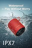 FUNLOGY Portable Mini2 Bluetooth Speaker, Wireless Portable Speaker with Deep Bass, IPX7 Waterproof, TWS Stereo Pairing, Built-in Mic, Small Speaker for Shower, Outdoor, Travel, Red