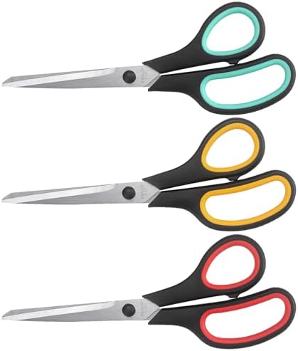 Scissors 8.5 Inch scissors all purpose Bulk Set of 3, Scissors for Office Home School Craft Supplies, Soft Comfort-Grip Right/Left Hand, Black
