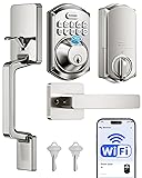 TEEHO TE012W-H WiFi Keypad Door Lock with Handle Set, Fingerprint Smart Locks, Front Door Keyless Entry, APP Remote & Voice Control, Digital Deadbolt with 2 Keys, Auto-Lock, Easy Install, Satin Nickel