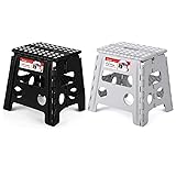 ACSTEP 13 Inch Folding Step Stool for Adults and Kids Holds Up to 300 lb Plastic Foldable Step Stools for Kitchen, Home, Outdoor and Indoor(Black&Grey)
