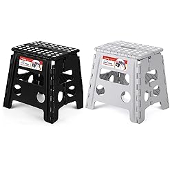 PREMIUM QUALITY - Manufactured to highest standards, made of tough & Sustained heavy duty plastic for long lasting durability. Our folding step stool has been approved by EN 14183 Certificate, all products are qualified factory test CARRYING HANDLE - Ergonomic carrying handle is designed for easy folding and carrying. Just lift the handle, it will fold easily and quickly in a split second with only one hand. The step stool’s handle magically appears when the stool is folded flat. Allowing you comfortably carry it around so they can place it where they need it SQUASH and ROUND CORNER PROTECTION FEATURE - We have designed a safety stop gap feature that allows the foldable stool to prevent being squashed, great for users. Four round corner super safe protect your body from clashing. All of these design is put you safe first ANTI SLIP - Special rubber dots on the surface and anti-slip black rubber strap on each foot for maximum foot grip and gives amazing comfort, preventing slippage. Unique, grip-dot textured surface makes the folding step stool safe for everyone. This safety features making the step stool great for multipurpose uses i.e. kitchen, bathroom, dining room, office, garden, camping, fishing and more PROPER USE - The maximum load capacity of the folding step is 300 pounds, which is mainly used for indoor sitting. The step stool must be used in dry and flat surface. Mustn't place the product in the environment above 30℃ and below﹣5℃ more than 5 hours
