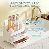 - Vtopmart 3-Tier Skincare Makeup Organizer with Drawers for Vanity and Bathroom Countertop, Large Cosmetic Storage Box Case for Dresser, with Non-Slip Base