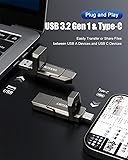 2 IN 1 Dual Drive:Designed with USB-A port and USB-C 3.2 port,our dual USB solid state drive can meets all your data transfer and storage needs across your smartphone, iPhone 16, iPad Pro, tablet, laptop, and USB-A computer, Smart TV, in-car audio system Ultra Data Transfer: This USB SSD improve USB 3.2 technology to achieve amazing data transfer speed of up to 500MB/s,it could transfer 4K videos,high definition photos,game data and more Plug and Work: Widely compatible with Windows Android, Linux and Mac OS, this USB C solid state drive is plug-and-work without any adapter or software installation. Also compatible with USB 3.2/USB 3.0/USB 2.0 Sturdy and Reliable: This SSD is made of zinc alloy,the metallic texture makes it perfect as a gift.High quality SSD standard improve data security and performance reliability Slim and Portable:This external SSD is easy to carry in your bag. Turning covers ensure your data is protected on the move