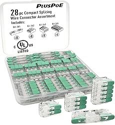Universal compatibility:Connect any combination of solid, stranded, and flexible copper wires faster and more reliably,Widely used in lightings, fans, automatic doors and all small appliances. SAFETY / UL LISTED: Tested, Approved and Certified by UL. Safety of your equipment, business, home and family depends on the quality of your electronics. Ideal Replacement for WA-GO 221 Service: Terminates 24-12 AWG for QJ-262, QJ-263, QJ-265 (replacements for 221-41x), 20-12 AWG for QJ-281 (Replacement for 221-2401) Visually inspect for proper strip length and complete wire insertion through its transparent housing. Reliable: Our lever wire connectors housing is made of made of Premium flame retardant PC material. With the advantages of long life, corrosion resistance, high-temperature resistance and aging resistance, PLUSPOE wire connector can effectively prevent electrical leakage. So the lever wire connectors are safer than traditional wire nuts. Includes: Total 28 pcs Lever wire connectors, Replacement for 8x 221-2401 (2 conductor inline), 8x 221-412 (2 conductor), 8x 221-413 (3 conductor), 4x 221-415 (5 conductor) with case