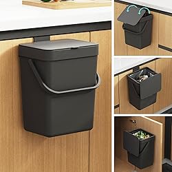 - Countertop Compost Bin, LALASTAR Hanging Small Trash Can with Lid Under Sink for Kitchen, Food Waste Bin for Countertop, Mountable Garbage Can for Bathroom, RV, 5L/1.3 Gal,Sliding Lid, Black