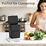 Wall Mount/Under Sink/Countertop Trash Can: The small trash can could be easily hung on kitchen cabinet doors, pantry doors. (The thickness of the door should be less than 0.86 inch) Moreover, this food waste basket can also be wall-mounted to under sinks, cupboard, kitchen wall or bathroom wall with adhesive pad or screws. Odor-Blocking & Fruit Fly Free: Say goodbye to the smelly decomposing waste. Our mini countertop trash can with a precisely-fit lid, you can let the scraps build up for several days without worrying about attracting fruit flies or terrible smells into your kitchen. Convenient: Use this trash can cabinet to store fruit scraps, vegetable peelings and other compostable materials for several days, and save your trips to your outdoor compost piles or bins. Compact Size: 1.3 Gallons / 5 Liter. 9.6” x 7.5” x 5.7”. The plastic garbage can doesn't take up too much countertop space. Perfectly fits on a countertop, under the sink, or in the pantry. Dishwasher Safe & BPA Free: The bathroom trash can with lid is made of high-quality, BPA-free plastic that is stain and odor resistant, easy to wash. The retention ring of the comosting bin helps keep the garbage bags from sliding down.