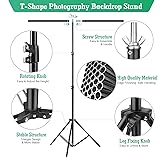 📽️【Adjustable Black White Screen Stand】: Our sturdy aluminum alloy stand features a T-shape design with height adjustable from 2.7ft to 6.5ft, the width is 5 ft. Knob-controlled adjustments make setup effortless, while safety-edged finishes ensure safe handling. Perfect for stable chroma keying without wobbling—ideal for streamers and home studios. ✅【2-in-1 Revisible Black White Backdrop】: Made of thick, opaque pure cotton that won't wrinkle easily. The seamless black and white background screen is machine washable, safe to iron, and built to withstand heavy use without wearing out. (Warm tips: This screen backdrop is folded and transported for a long time, it should be ironed with steam before use.) 📸【Quick Assembly & Portability】: Sets up in minutes! Simply align the crossbars, secure them with screws, and turn the tripod knob to adjust the angle and height. The retractable portable photography backdrop kit neatly into its included storage bag, making it ideal for photography or video work on the go. 🎥【Multi-Purpose Studio Solution】: Ideal for diverse applications—including live streaming, gaming, virtual production, interviews, conference recording and special event decor. Matching spring clips hold the backdrop in place to prevent slippage—no more distracting wrinkles or shadows. 📦【Complete Kit, Ready to Use】: This Black white backdrop with stand kit includes: (1x) 6.5ft Support Stand, (2x) 2.5ft crossbars, (1x) 5x6.5ft Double-sided black and white backdrop, (5x) spring clamps, and a storage bag. The fully collapsible tripod saves space and fits neatly into the included organizer bag for compact storage.