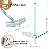 Generous Quantity: our package contains a generous quantity of 100 pieces drywall expansion toggle bolts (100 pcs 3/16" X 3" expansion bolts and 100 pcs butterfly nuts), making it a good kit for both daily needs and larger construction projects Quality Build: these toggle bolts are crafted from quality carbon steel and undergo a galvanization process; They are not normal butterfly screws anchors, but also effectively resist corrosion, even in damp environments; Thus ensures a highly durable usage, good for hanging heavy objects Easy Installation: when installing, you need to pre-drill a hole large enough to pass through the folded spring wings, then pass the bolt through the hole, loosen the wings and clamp them inside, and finally tighten the bolts so that they rest against the wall and hold the fasteners firmly in place; Note: leave enough space for the wings to loosen, it is best to tighten the bolts with an electric screwdriver Versatile Usage: these butterfly screws anchors are suitable for securing and hanging various items such as lamp fixtures, bookshelves, sinks, cabinets, water heaters, clothes hooks, curtain tracks, cable channels, flower pots and more; The smooth and shiny surface of the carbon steel galvanized bolts blend seamlessly with any wall decor, maintaining the overall aesthetics Wide Application Range: these durable toggle bolts are excellent for suspending objects on hollow walls; They are extensively applicable to dry walls, plasterboard, brick walls, hollow blocks, plaster, tiles, light fixtures, curtain rods, frames, clothes racks, power switches, and other hollow substrates