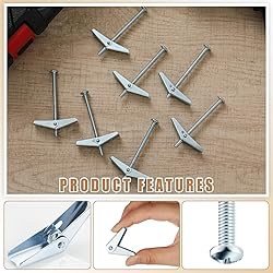 - Features: Strong Bearing Capacity: With a size of 3/16" X 3", these butterfly anchors for drywall not only ensure that the bolts are firmly fixed in the wall, but also can bear relatively heavy weight. Ideal for fixing heavy objects, the compact bolt design provides a secure installation that effectively prevents items from falling and ensuring user safety. Excellent Elasticity: The butterfly screws anchors exhibit great elasticity. After bearing pressure, they can rebound to their original state, maintaining a good fix and distributing the force evenly across the wall surface to avoid ruptures or damage. Specifications: Material: carbon steel Color: silver Size: 3/16" x 3" Package includes: 100 x Toggle bolts Notes: Manual measurement, please allow slight errors on size. The color may exist a slight difference due to different screen displays. Leave enough space for the wings to loosen during installation. It is best to tighten the bolts with an electric screwdriver