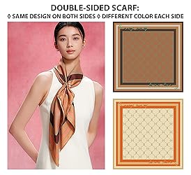 100% silk with hand rolled edges, imported from one of the world's top-rated silk producers Double-sided scarf: both sides have the same design but different colors Luxurious, high-quality, double-sided scarf with hand-rolled edges, measuring 35" x 35" 16 momme weight for a heavier, softer silk that's durable and versatile Twill weave with a pattern of diagonal parallel ribs for reinforced structure
