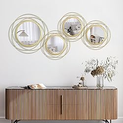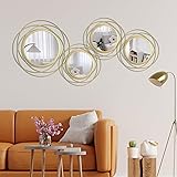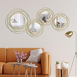 - 4 Set Mixed Size Gold Circle Mirrors Wall Decor Iron Frame Wall Art Round Mirror Home Decor Hanging for Living Room/Bedroom/Bathroom/Entryway