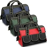 Sufficient Quantity: package includes 3 pieces of tool bags with various generous colors, blue, red and army green; Enough quantity to meet your different daily demands, proper for garage, home, garden, office, car and more Sturdy and Waterproof: the tool bag adopts quality 600D oxford fabric, with hard material bottom, hard and reliable, won't tear or break easily, will serve you for a long time, are ideal Christmas gifts for dad, husband, your dad, family member Multi Pockets: with 8 pockets on the side, and large capacity, these HVAC tool bags are ideal for holding wrench, measure tape, pliers, scissors, hammer, screwdriver and other tools Suitable Size: the electrician tool bag measures about 18 inches in length, portable and convenient, with nice zipper design, nicely storage your tools, make sure your tools don't get lost easily Wide Applications: general purpose design to allow you to get the most out of this tool organizer; No matter you are a homeowner or a electrician carrying electrical, mechanical, drywall, HVAC, construction, or locksmith tools, bring you convenience