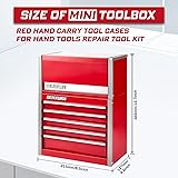 Geinxurn Mini Tool Box 3 Drawer Micro Top Chest and 5 Drawer Micro Roll Cab with Magnetic Locking Stackable Portable Hand Carry Tool Cases for Tools Storage (Red)