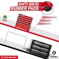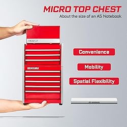 - Geinxurn Material: Q235 Steel3 Drawer Micro Top Chest: 8.6 X 4.6 X 4.8 inches 5 Drawer Micro Roll Cab: 8.6 X 4.6 X 7.9 inches Color: Red This tool box is made of high quality Q235 steel for long-lasting durability. The surface is covered with powder green paint finish, which is beautiful and easy to clean. equipped and provide a smooth glide operation. Equip with Liner: Provides protective moisture barrier between tools and drawer, and protect your tools from rust Brand Story: Geinxurn was established in 2019, which engaged design, development and produce all kinds of tools. As a professional tools producer, we’re not only aim to meet all of your needs on using tools, but also keep to research and development and launch of new products. Your satisfied is our final goal.