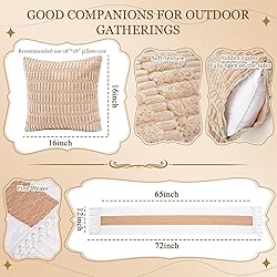 Extra Large Outdoor Boho Picnic Blanket with Table Runner and 6 Throw Pillows Covers Wedding Party Decoration Photoshoot Home Garden Party Decor Patio Lawn Outdoor Mat Beach Party theme Supplies White
