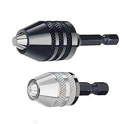 1. Unleash Pro-Grade Versatility!Transform your impact driver into a precision powerhouse with our 2-pack keyless drill chuck adapter 1/4 hex shank! This universal drill chuck seamlessly converts tools for multifunctional use. The silver small drill chuck (0.3-3.6mm) handles delicate tasks like electronics, while the robust black hammer drill chuck (0.3-6.5mm) tackles heavy materials. Ideal as a drill press chuck, impact wrench adapter for drill bits, or for Dremel drill chuck applications. No more swapping—pure efficiency in one compact set! 2. Revolutionary Grip Technology!Say goodbye to slipping bits! Our drill bit collet kit features a keyless drill chuck with three-jaw design and spring-loaded blades for 360° grip. Compatible with high-torque tools like Milwaukee Jacobs keyless drill chuck or DeWalt magnetic chuck adapter, it ensures zero slippage under pressure. The hex drill chuck adapter Makita users love delivers flawless centering, making it a safe choice for precision drilling and driving tasks. 3. Keyless Quick-Change Convenience!Ditch the drill chuck ratchet forever! Our sleeve design lets you swap drill bit attachments for impact driver in seconds—just slide, insert, and release. Weighing 30% less yet offering double the clamping force, this keyless chuck for impact driver is perfect for tight spaces. Use as a clip-in adapter for drill bits or with 90° angle drills, saving time and frustration on any job site. 4. Built to Endure Extreme Conditions!Forged from military-grade carbon steel with anti-corrosion plating, this impact drill chuck survives tough jobs. Tested to withstand of torque from brushless impact drivers without jaw deformation. The reinforced 1/4 hex drive adapter eliminates flex in hammer drill rigs, while heat-treated claws outlast generic models 5:1. Includes a lifetime "No Shatter" guarantee—engineered for pros demanding reliability. 5. The Workflow Upgrade!Pros nationwide pair this universal drill bit chuck adaptor with DeWalt impact driver adapter drills, Ryobi drill attachments, and more for seamless transitions. The compact design stores easily in any small impact driver case, while dual chucks cover everything from micro-bits to 1/4 inch drill chuck tasks. Whether for cabinetry, auto repair, or DIY, this all-in-one solution enhances efficiency with magnetic and keyless features.