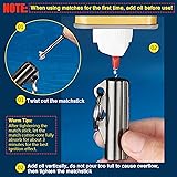 How It Works: The match is made up of the flint striker and wick. On the side of the container is a steel rod. The match ignites as the flint striker strikes down the steel rod.(Reminder: Due to transportation regulations, this product does not contain fuel. Please add a little lighter fluid before use.) Built to Last: The permanent match infinity lighter featuring a durable all-metal body. The striker lasts 10,000 strikes. Features a magnesium - steel alloy flint rod and Re usable and refillable. Comes with a spare wick. Compact & Portbale: A great forever matchstick that is reusable and very suitable to be carried on the keychain, backpack, car and in your pocket as edc survival tool. Waterproof and Seal: This waterproof infinity lighter permanent match is unibody design with bigger lighter fluid tank and more reliable sealing, which make it more durable and waterproof, works equally well when moist weather or low-temperature. Widely Use: The permanent match infinity lighter keychain can provide you the simplest way to make a fire, especially great for outdoor, survival, camping, hiking and etc. It is a perfect gift for your friends and families.