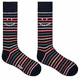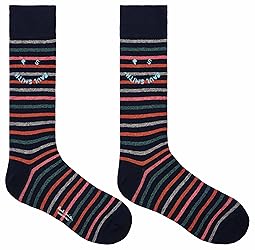 Made in Italy from a soft cotton blend these navy socks feature a colourful stripe pattern throughout and a 'PS Happy' logo. These socks are complete with ribbed ankles.