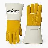 AMERIARC Stick Welding Gloves Large (128) | Premium Cowhide Split and Top Grain Leather | Extra Long, Heat and Spark Resistant | Heavy Duty Work Gloves for Welding Safety & Industrial Use