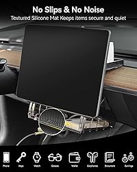 Customized Fit for Tesla:Expertly cafted For a seamless, factory-original look in the Tesla Model Y Juniper 2025 2026 & Model 3 Highland 2024 2025 2026.Ensures a perfect, silent fit with zero rattles while driving. Effortless Magnetic Installation:This Under Screen Storage Box features powerful magnetic beads for a foolproof setup. Just align the upper and lower parts—they snap securely into place, ensuring a rock-solid hold even at high speeds. Spacious & Organized:Generous storage for all your essentials. The top tier is designed for a tissue box, the main compartment holds keys, earbuds, and sunglasses,etc..while the dedicated bottom slot securely cradles your phone. Foldable for Privacy:The main compartment easily folds closed, concealing your belongings to protect your privacy and keep clean and aesthetic Anti-Slip & Silent:The Storage Box includes an eco-friendly, odorless silicone pad that prevents items from sliding and shifting, eliminating distractions and annoying noises.