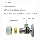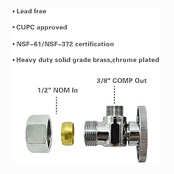 【All-In-One Installation Kit】This complete toilet hose kit has everything: a 16 inch flexible toilet supply line (3/8" female COMP x 7/8" female ballcock thread), a toilet shut off valve (1/2" NOM Inlet x 3/8" OD Compression outlet), and an escutcheon plate. Get everything you need in one box for a quick and easy installation. 【Certified Safe & Lead-Free Materials】This toilet water supply line and valve have North America Quality Insurance, NSF-61/NSF-372 certification and CUPC approved, guaranteeing lead-free, safe materials for your home. 【Leak-Proof & Durable Braided Design】Our toilet connector hose is built with a sturdy 304 stainless steel braided exterior, engineered to resist corrosion, prevent kinking, and ensure a reliable, long-lasting toilet water supply line. 【Effortless Universal Fit】Designed for a perfect fit, this toilet supply line 16 inch features standard 3/8" COMP x 7/8" BC connections. The included quarter-turn toilet water valve makes for a simple, tool-free connection. 【Corrosion-Resistant & Professional Finish】Built for lasting value, the toilet angle stop valve features a corrosion-resistant brass construction and a sleek chrome finish, making it easy to clean.