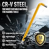 【A Great Gift Choice】DISEN hex wrench set is a wonderful gift, be it for Thanksgiving or Christmas, for both family and friends. It is an essential tool for assembling furniture, repairing appliances, maintaining bicycles, and debugging electronics, making it widely useful from household tasks to professional applications. 【Extra Long Arm Allen Wrench Set】With a 30% increase in length compared to standard short keys, this hex key offers greater leverage for easy tightening and loosening. It also provides better access to deep or obstructed spaces with improved visibility for easier alignment. Furthermore, the ergonomic design ensures more comfortable operation by allowing for a more even distribution of force. 【18 Pcs SAE & Metric Size】DISEN 18 pieces metric allen key sets provide 9 pieces metric sizes including: 1.5, 2, 2.5, 3, 4, 5, 6, 8, 10mm. 9 Pieces SAE allen key sets provide standard sizes including: 1/16, 5/64, 3/32, 1/8, 5/32, 3/16, 1/4, 5/16, 3/8 inch. 【Color Coded Design】The rich color scheme eliminates the dull and monotonous look of traditional tools. Moreover, each color serves as a strong visual cue, preventing you from picking the wrong size and allowing you to instantly spot the right one in your toolbox, saving valuable time. 【Quality Guarantee】We assure you that every allen key has been tested strictly to meet the industrial standard of hardness and durability. They can last for a lifetime with normal use.