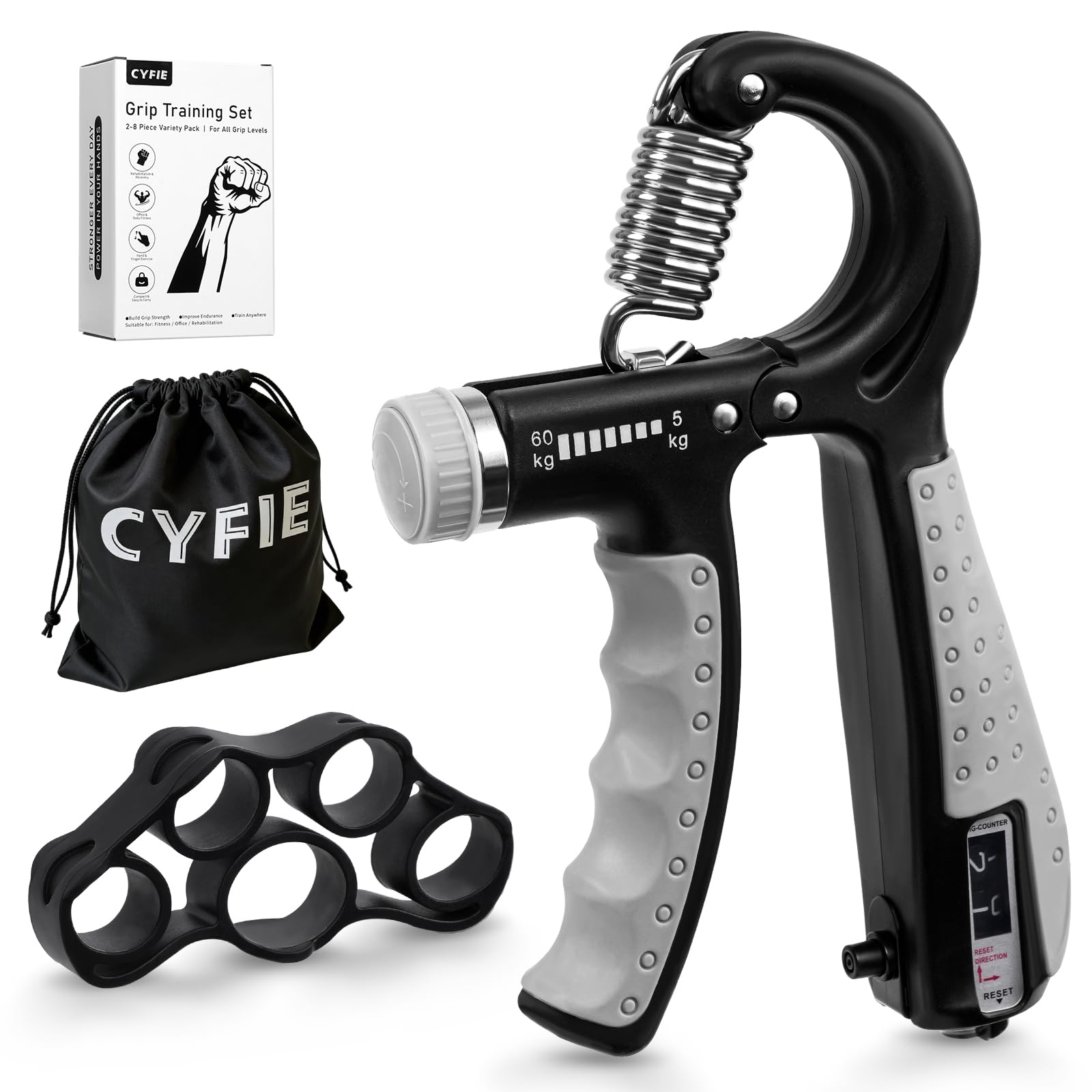 CYFIE Grip Strength Trainer Kit with Adjustable Resistance 10 - 132 Lbs, Forearm Exerciser, Finger Stretcher, Stress Ball, Forearm Strengthener for Workout wuth Storage Bag, Muscle Building and Recovery