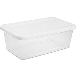 - 20-Pack 6-Quart Storage Containers with Snap-Fit Lids (White) – featuring exterior dimensions of 13 1/2" x 8" x 4 5/8" and interior bottom dimensions of 11 1/2" x 6" x 4 1/4".The clear base offers instant visibility of contents,letting you spot what you need without unstacking or opening the lids—saving time on rummaging through storage.The snap-fit lids form a tight seal to keep items secure (great for dust-prone or small belongings),and their recessed design enables stable stacking to make the most of closet,cabinet,or pantry space.These containers fit perfectly with standard closet shelving and work well for everyday home storage needs—whether holding makeup,office supplies,kitchen utensils,or shoe accessories.For safe stacking,we suggest placing containers with heavier loads at the bottom to maintain stability.
