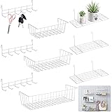 Yaocom 9 Pcs Grid Wall Shelves Gridwall Accessories Wall Grid Panel Hanging Basket with Hooks Set Includes 3 Basket 3 Wire Straight Shelf 3 Hooks Rack for Home Storage Display Organizer (White)