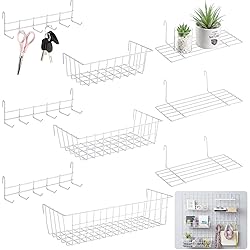 Generous Quantity: you will get 9 piece wall grid panel set, including 3 mesh grid wall basket, 3 wire straight grid shelf and 3 mesh grid wire rack; The quantity is sufficient to meet daily household storage needs while providing more storage space for various items Varied Size Options: the wall grid accessories have 3 styles, the sizes of the 3 white grid wall basket are 15.35 x 5.91 x 3.94 inches/ 39 x 15 x 10 cm, 11.61 x 5.91 x 2.76 inches/ 29.5 x 15 x 7 cm and 9.06 x 4.33 x 2.76 inches/ 23 x 11 x 7 cm; The size of grid wall hook is 10.24 x 2.36 x 2.76 inches/ 26 x 6 x 7 cm; The size of the grid wall shelves is 9.84 x 3.94 inches/ 25 x 10 cm; This grid panel accessories set have various sizes, and you can freely distribute and organize your items Quality Material: our grid panel wall organizer set is made of wire material, with white coating on the surface, not easy to fade or deform, sturdy and reliable rust proof, so you can use it for a long time Easy to Use: our grid baskets, shelves and hooks are designed with back hooks to help you organize and display items on the wall, save desktop area and maximize your storage capacity; These grid hanging baskets can bear up to 12 pounds, which can provide enough storage space to store heavy and large items Widely Used: our grid wall accessories can accommodate various items such as photos newspapers magazines potted plants decorations cosmetics dolls and other things you like, suitable for living rooms kitchens bedrooms dormitories restaurants and offices