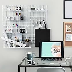 - Features: Multiple uses: Grid panel accessories are suitable for various retail displays, living room decorations, garages, workbenches, workshops, kitchen basements, shops, tool sheds, factories or warehouses, it can be convenient tool for organizing items and enhancing space. Multi functional: Wall grid panel accessories can compactly arrange items, save more space and easily access various items, no need to find things in the clutter, adding sense of ritual and convenience to our lives. Specifications: Material: Wire Color: white Size: White grid wall basket size: 15.35 x 5.91 x 3.94 inches/ 39 x 15 x 10 cm, 11.61 x 5.91 x 2.76 inches/ 29.5 x 15 x 7 cm, 9.06 x 4.33 x 2.76 inches/ 23 x 11 x 7 cm Grid wall hook size: 10.24 x 2.36 x 2.76 inches/ 26 x 6 x 7 cm Grid wall shelves size: 9.84 x 3.94 inches/ 25 x 10 cm Package includes: 3 x white grid wall basket 3 x Grid wall hook 3 x Grid wall shelves Notes: Manual measurement, please allow slight errors on size. The color may exist a slight difference due to different screen displays