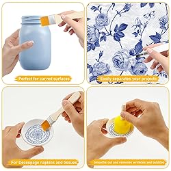 Package Contents : This set includes 19 essential decoupage tools : 1 silicone table mat , 5 foam brushes , 8 decoupage brushes , 3 water pens , 1 glue bowl , and 1 spray bottle Tool Combination : Foam Brushes : Soft and even , ideal for applying glue over large areas without leaving brush marks . Decoupage Brushes : Fine , convenient for detailed handling . Water Pens : Ensure precise water control to avoid paper from wrinkling . Spray Bottle : Adjust atomization effect to help paper fit smoothly Practical Protection : Nonslip silicone table mat can effectively protects the desktop from glue penetration and scratches; the glue bowl has edge diversion port design for easy glue taking without dripping . Used with the spray bottle , you can control humidity , making the scrapbooking process smoother and cleaner Versatile Application : Suitable for various handcraft scenarios , such as decoupage art , furniture renovation , greeting card making , photo frame decoration , glass bottle painting , wood product coating , and fabric transformation Ideal Choice : It is a thoughtful present for craft lovers , art students , mothers , and children , ideal for occasions like birthdays , festivals , Mother's Day , and Children's Day to convey creativity and fun