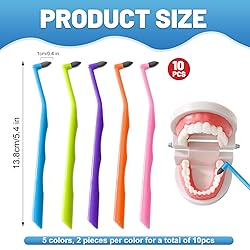 10 PACK TOOTH STAIN REMOVER TOOLS: Includes 10 tooth stain remover tools in 5 assorted colors (blue, purple, orange, green, pink). Each tool measures approx. 5.4 inches / 13.8 cm with a 0.4 inch / 1 cm polishing head, designed for daily stain removal, plaque control, and oral care. HIGH-QUALITY MATERIALS: Made of strong PP plastic with a non-slip TPE silicone grip for comfortable handling. The sturdy design keeps its shape while remaining lightweight, making it suitable for repeated oral cleaning use at home or while traveling. STAIN REMOVER POLISHING HEAD: Each tool features a small polishing head that gently erases tooth surface stains, plaque, and tartar buildup. Helps improve overall oral hygiene, brighten teeth, and maintain a healthier smile. ERGONOMIC NON-SLIP HANDLE: The curved ergonomic handle allows easy access to hard-to-reach areas of the mouth. Non-slip silicone grip provides better control and precision, making cleaning and polishing safer and easier. MULTI-PURPOSE ORAL CARE SET: Compact and portable, these tools can be stored in a dental kit, purse, or travel bag. Great for adults and teens to maintain daily oral hygiene at home, school, work, or on the go. The multi-color design makes them practical for family sharing.