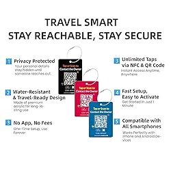 DUAL NFC & QR CODE PROTECTION: Unlike ordinary QR code luggage tags, our Smart Luggage Tags combine NFC + QR Code technology, giving finders two easy ways to contact you. Simply tap with an NFC-enabled phone or scan the QR code to view your customized message and instructions — helping you quickly reunite with your belongings 3-PACK COLOR SET WITH PREMIUM MATERIALS: Each set includes 3 luggage tags (black, red, and blue), made of durable acrylic for long-lasting use. Every tag comes with a strong metal loop to securely attach to your suitcase, backpack, or travel bag. Compact 2×3 inch size makes them easy to spot without adding bulk PRIVACY-FIRST LUGGAGE IDENTIFIER: No need to print your name, phone number, or address on the tag. With our NFC & QR code luggage tags, all communication happens through a secure platform. You stay reachable while keeping your personal details safe — essential for privacy-conscious travelers VERSATILE USE FOR TRAVEL & DAILY LIFE: Attach these durable suitcase tags to carry-ons, handbags, kids’ backpacks, strollers, diaper bags, or even professional gear. Perfect as cruise luggage tag holders, travel tags for luggage, or Europe vacation essentials, making your bags stand out and stay protected wherever you go EASY ACTIVATION & UPDATABLE INFO PAGE: Activate each smart luggage tag with a quick scan and connect it to your account in seconds. Update item details anytime — ideal for organizing travel gear, recording item info for insurance, or keeping bag contents clearly labeled. No app or subscription required, works with any smartphone