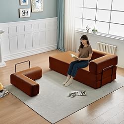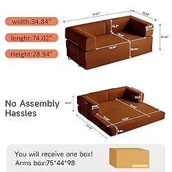 【Space-Saving Magic】 Unique tri-fold design allows 3-second transformation between sofa, single bed, and double bed modes. Detachable units enable L-shape, straight-line, or split layouts.Perfect for movie nights, guest stays, or playtime—ideal for maximizing space in small homes 【Cloud-Like Comfort】 The corduroy gives you a comfortable feeling liketouching the cloud, and is particularly soft for children .The floor couch's rounded edges and boneless design ensure safetyand prevent accidental collisions. High-density reboundfoam base supports for waist, back, and neck no sagging even after hours ofuse 【Premium Materials & Stable Design】This sofa bed comes with two fixed metal frames, two soft pillows, and two removable armrests—blending sturdiness with flexible use. It also features an extra-deep 24.8-inch seat for cozy lounging or napping, plus anti-slip foot pads that keep the sofa steady, preventing shifts during use 【Retro-Modern Aesthetics】Premium (embossed corduroy) with silky-soft texture, available in 5 luxe colors (caramel brown, deep Blue, Beige,Off-white,oat gray). Effortlessly complements Nordic, vintage, or modern luxury interiors 【Instant Setup, Zero Hassle】 No installation .No tools required—unbox and enjoy! Perfect for design newbies or organization pros