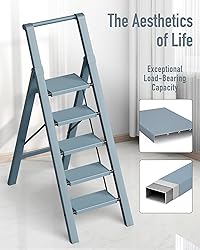 Mayi Plus 5 Step Ladder, Lightweight Folding Step Stool with Convenient Handgrip,Aluminum 330lbs Capacity Step Ladder for Office,Household,Kitchen,Library(Blue)