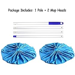 Package Includes: One aluminum pole + Two blue microfiber cloth mop heads Mop Head Material: Microfiber cloths contain millions of tiny fibers that have a slightly positive charge to attract grime and dirt. because the fiber is so small and so much it penetrates cracks and pickups every small particle. microfiber’s properties make it a superior material for cleaning. Dry Fast and Restrain Bacterial Growth and Odor: mop heads could be washed with all kinds of disinfectants and dry fast Whole Microfiber Cloth: New design with better coverage and leaves no fabric lint. And the microfiber is thick and full, so the plastic top of the mop head does not scratch the floor Aluminum Pole: It’s lightweighted, bye bye to achy hands. 4 Section Pole Snap on Installation: 1 section=1.3 ft.; 2 section = 2.6 ft.; 3 section= 3.9 ft.; 4 section = 5.2 ft.