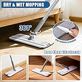 Flat Mop and Bucket Set with Heavy Duty Scrub Brush, 2 Washable Reusable Microfiber Pads, for Tile Hardwood, Wall Cleaning, Home Indoor or Outdoor Cleaning (White-Gray)