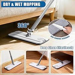 - Flat Mop and Bucket SetPackage Include:1* Flat mop2*Microfiber mop pads1*Collapsible mop bucket1*1*Heavy duty scrub brush1*Mop scraperParticularsOur microfiber flat mop features a 360° swivel head, making it easy to clean under beds, sofas, and other hard-to-reach areasOur mop bucket features a space-saving foldable design, making it easy to store in a cabinet, under the sink, or between the washing machine and countertopThis heavy-duty floor brush has strong bristles that easily handle the toughest cleaning jobs without bending or breakingThe extended length minimizes bending and squatting, which helps reduce strain and makes cleaning easier and less tiring