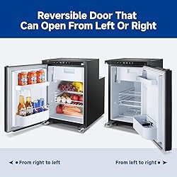 Professional & Powerful Compressor : BODEGA RV Mini Refrigerator can be a fridge (41.7 L) and freezer (3.3 L) simultaneously! It can chill down to 4°F using powerful compressor cooling technology, from refrigeration to freezing. Adjust the freezing or refrigeration range of the car refrigerator from -4 ℉ to 46 ℉ as needed. This portable refrigerator and freezer is a good choices for outdoor activities such as camping, picnics, road trips, and more. RV refrigerator to accompany you on your journey Dual Zone & APP Control : BODEGA 12 Volt RV refrigerator supports manual control or WiFi APP control (For android & ios). Dual zones allow for both freezing and refrigeration, with the upper zone serving as the freezer and the lower zone as the refrigerator. You can check or set the temperature, voltage, cooling mode and more using the APP User Friendly Design : This Portable Fridge Freezer is equipped with a removable crisper drawer, shelf, bottle holder, egg tray, and drain plug. Convenient interior light for easy access in the dark and an easily reversible door that can be opened from the left or right. The BODEGA Car Fridge provides 3 levels (H/M/L) of battery protection to prevent the car power supply from overloading or short-circuiting, so you don’t have to worry about running out of car power during your camping or journey Energy Saving & Low Noise : BODEGA car refrigerator RV has 2 modes Max (Fast Cooling) and ECO (Energy Saving), which is energy-saving and relatively environmentally friendly. Two different modes can be ajusted as your need. Less than 45 dB low noise design provides a silent and comfortable environment for you when it is running. With anti-45°slip, our portable fridge can work normally even on bumpy roads Support & Service : BODEGA RV fridge and freezer offer 1-year maintenance. If you have any question about our car freezer, please contact us via Amazon and we will response you. BODEGA car fridge 12 v is equipped with 12/24 V DC, which can be used on various vehicles, such as SUV, Truck, RV, Camper, Van, etc