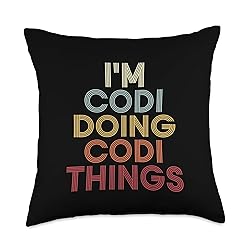 Codi name I'm Codi doing Codi personalized name or surname for a birthday party. I'm Codi doing Codi name customized name custom name is funny first name retro vintage text as a fun family name last name novelty. Codi name I'm Codi doing Codi personalized name first name cute name customized name retro text. I'm Codi doing Codi name first name last name custom name is a funny name retro font with given name. 100% spun-polyester fabric Double-sided print Filled with 100% polyester and sewn closed Individually cut and sewn by hand Spot clean/dry clean only